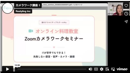オンライン教室開催時のZOOMレッスンに特化したカメラワークをテーマにしたレッスンです。