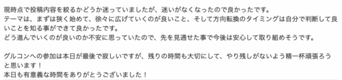グループコンサルでは梅原けいがお一人ずつスクール生のお話しを伺い、